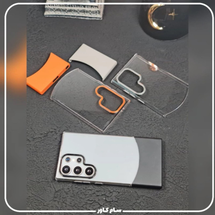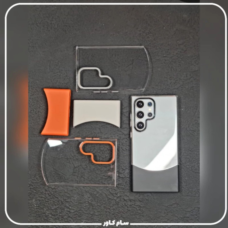 قاب s24 ultra سامسونگ هیبرید کلیر شفاف نارنجی و طوسی